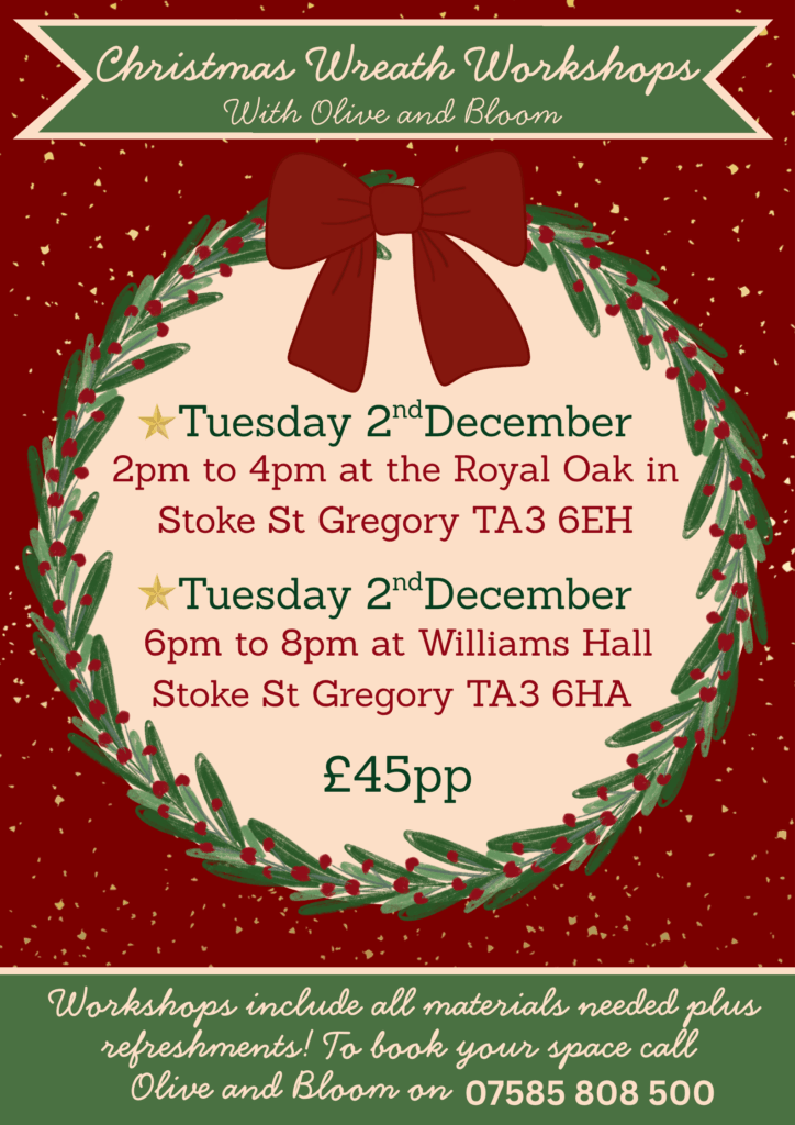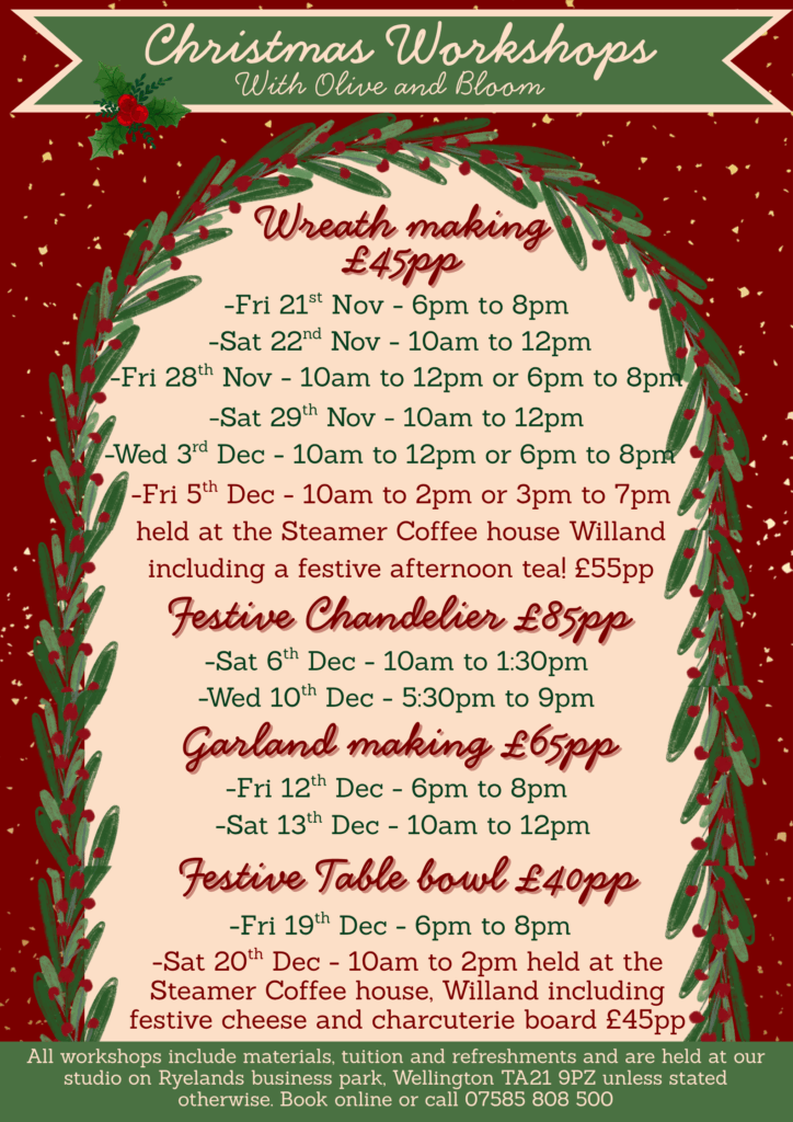 We have workshops being held at our studio in Wellington Somerset, The Steamer cafe in Willand and also two venues in Stoke st Gregory!